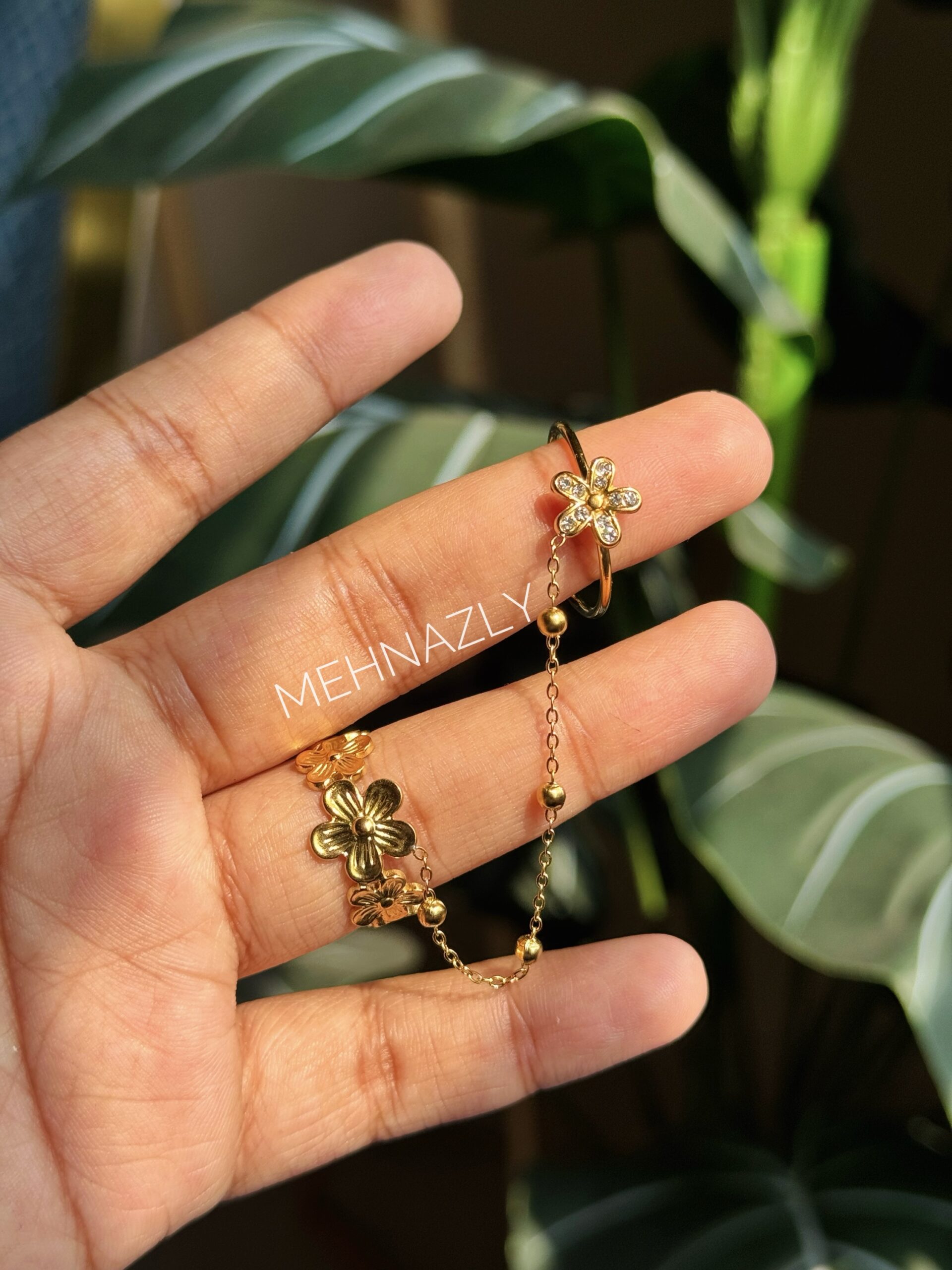 Stainless steel Flower ring. Finger hugging. Adjustable