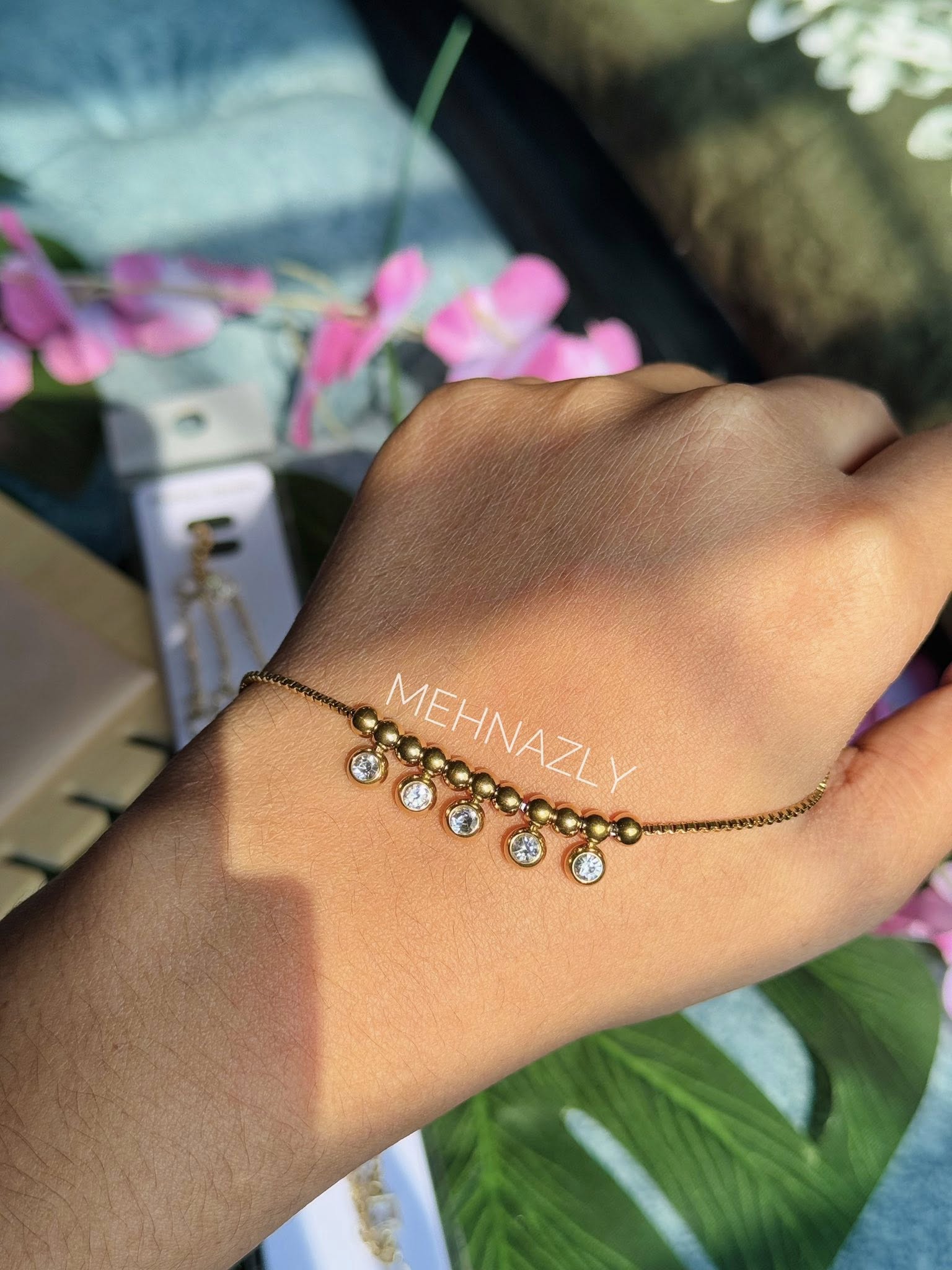 18k gold plated adjustable bracelet.