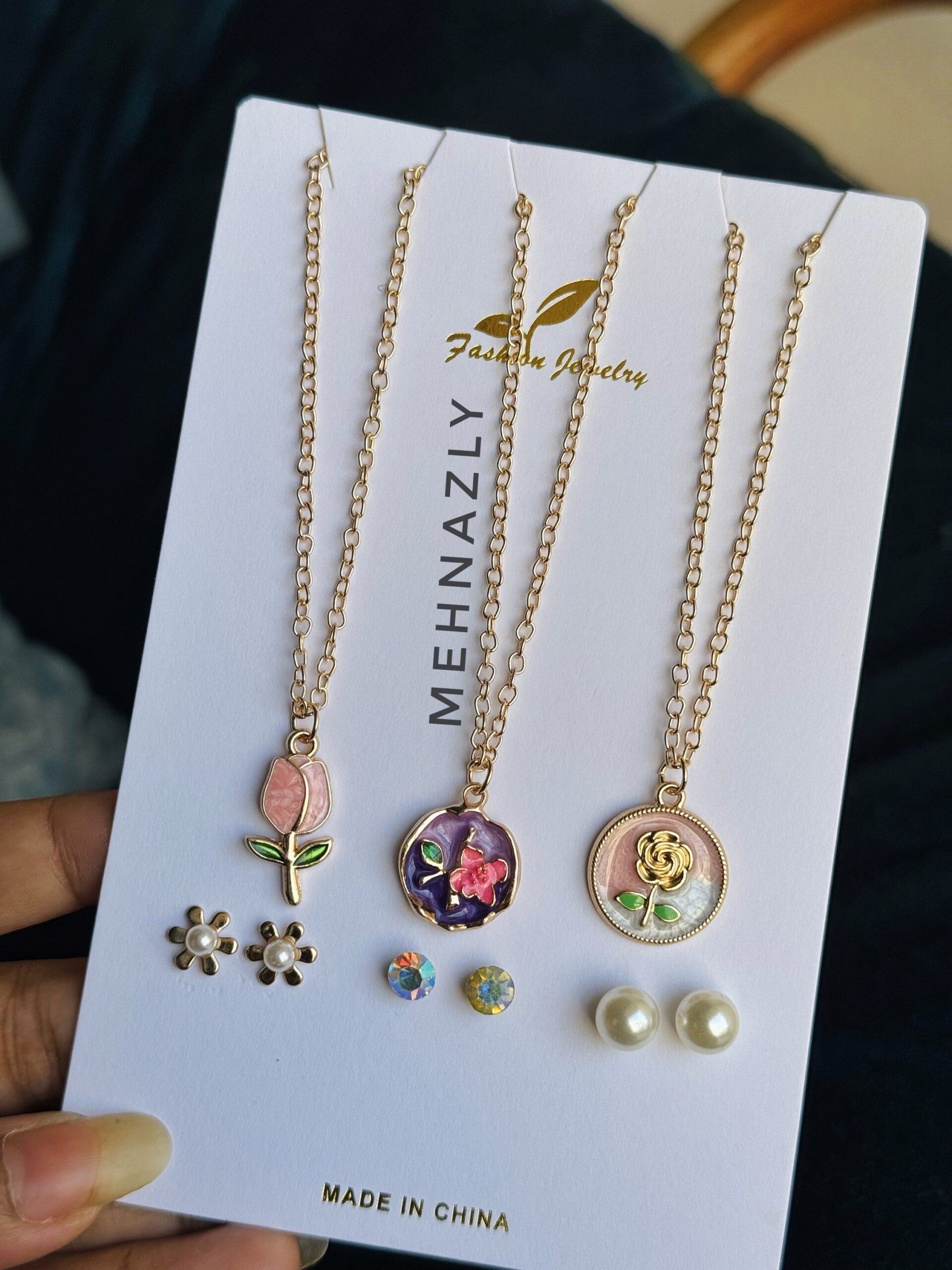 Korean style neckpiece set. 3 neckpieces and 3 earrings. (No colour guaranty)