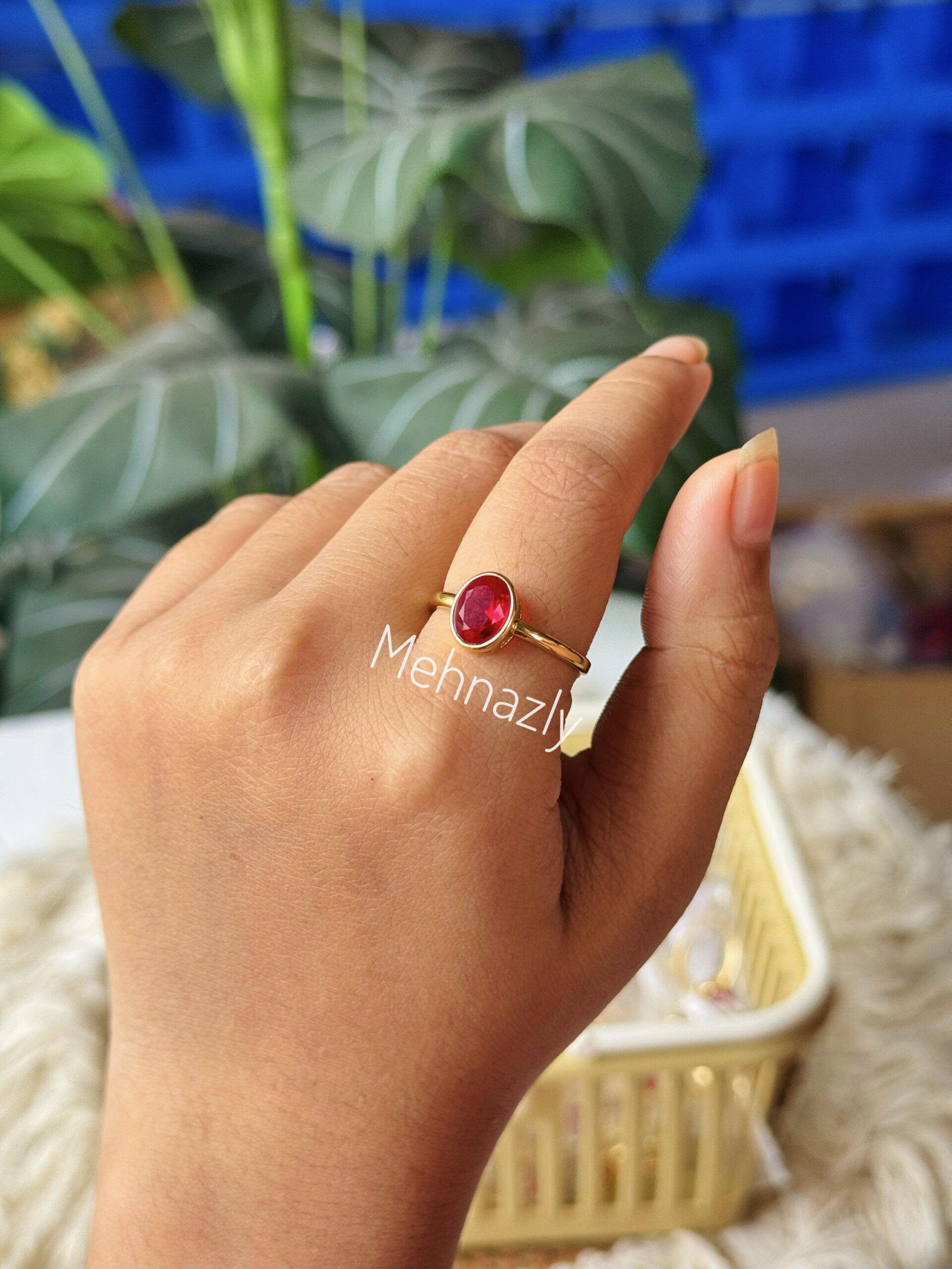 18k gold plated ruby stone ring. Adjustable and colour guaranteed