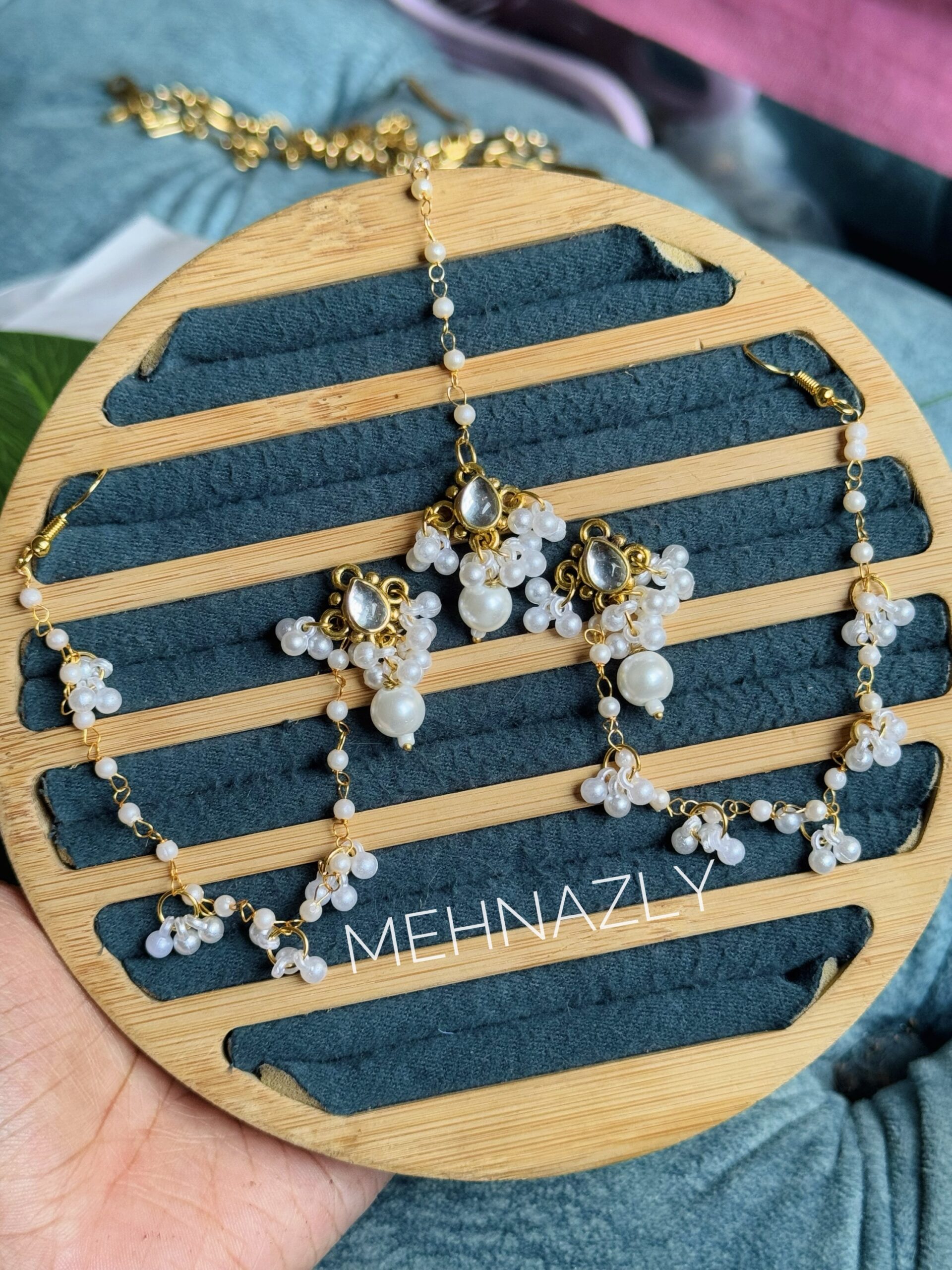 Kundan tana earring and tikli set.