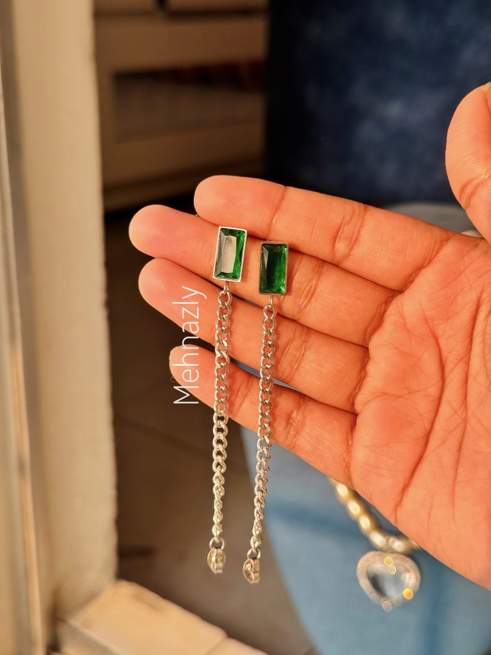 Stainless steel green stone earring
