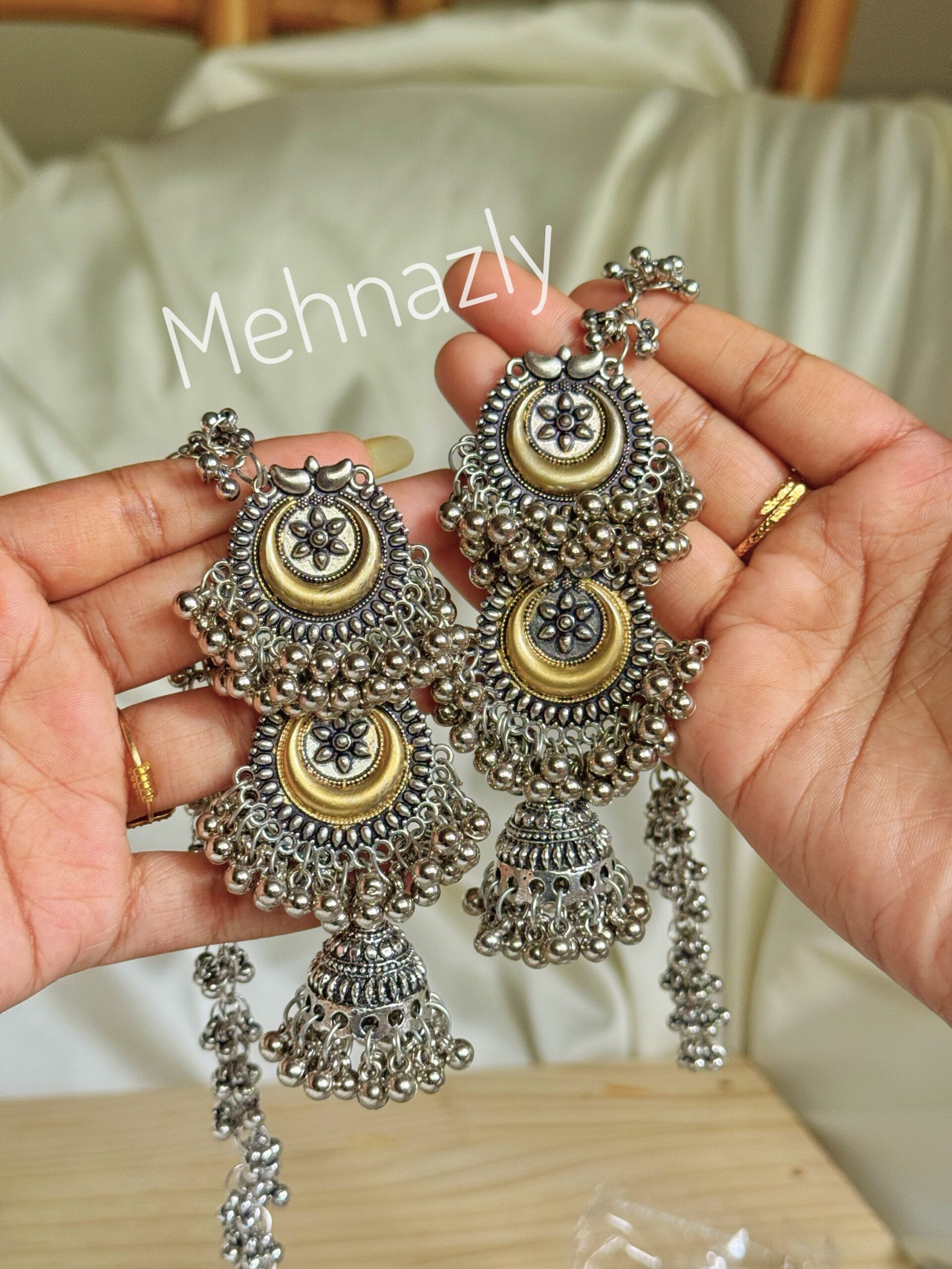 Duel tone german silver jhumka with tana