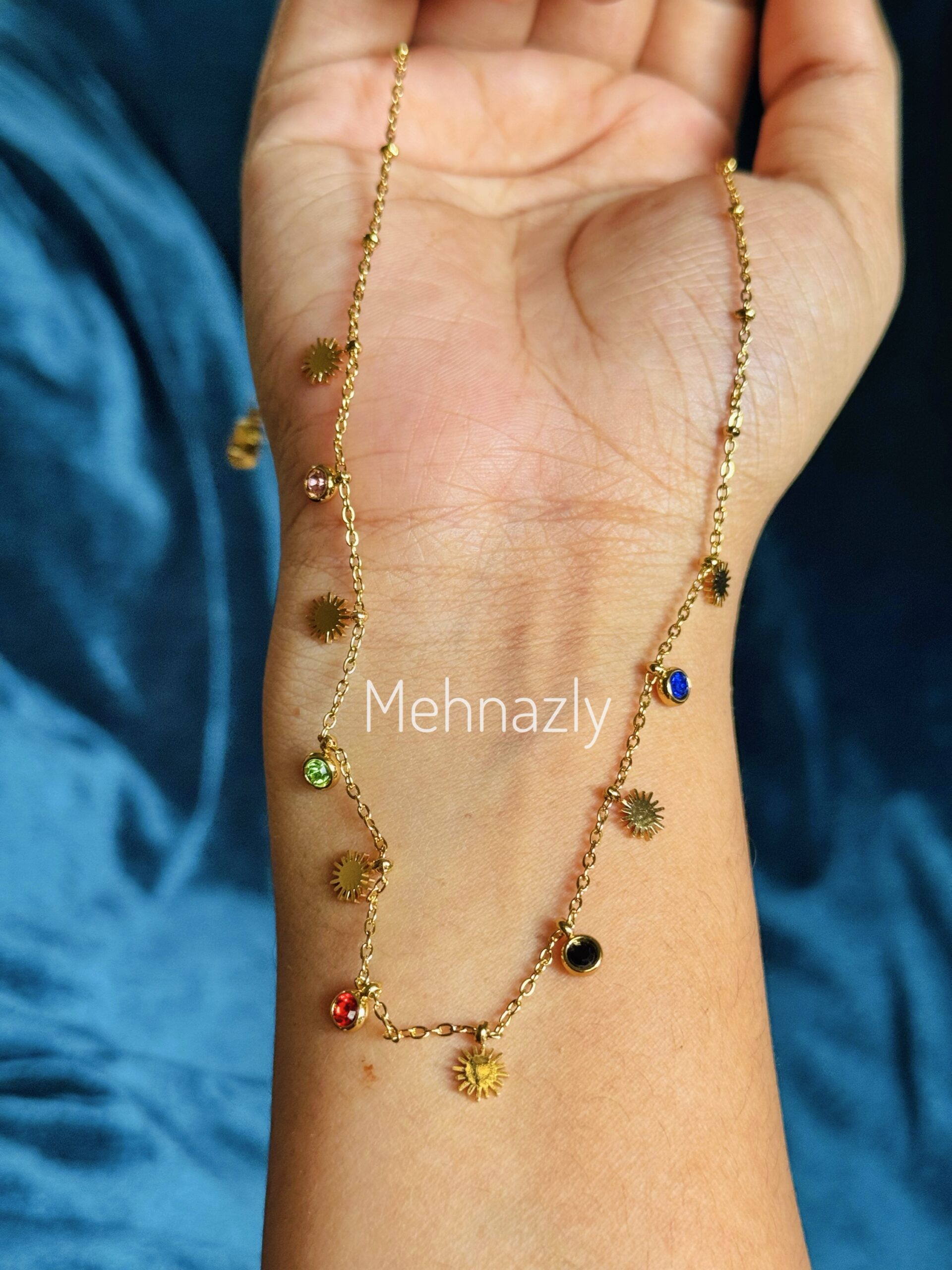 Stainless steel multicolour stone neckpiece